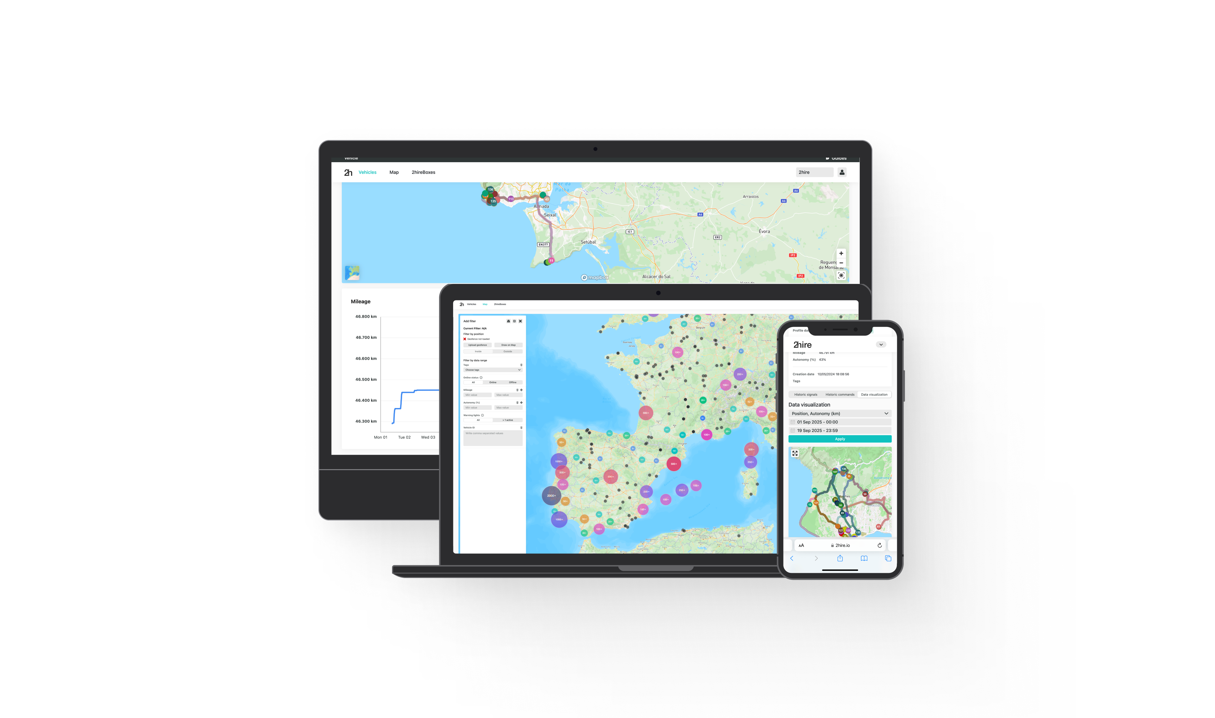 Whether you need to lock or unlock, locate, immobilize, or access fuel, battery, and much more, 2hire is your Go-To Platform to connect, control, and understand every vehicle.